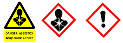 All Asbestos in place listed in the Asbestos Inventory, as required by Regulation 4 of the Asbestos Abatement Regulations 2020, must be clearly and legibly identified using the pictogram below: